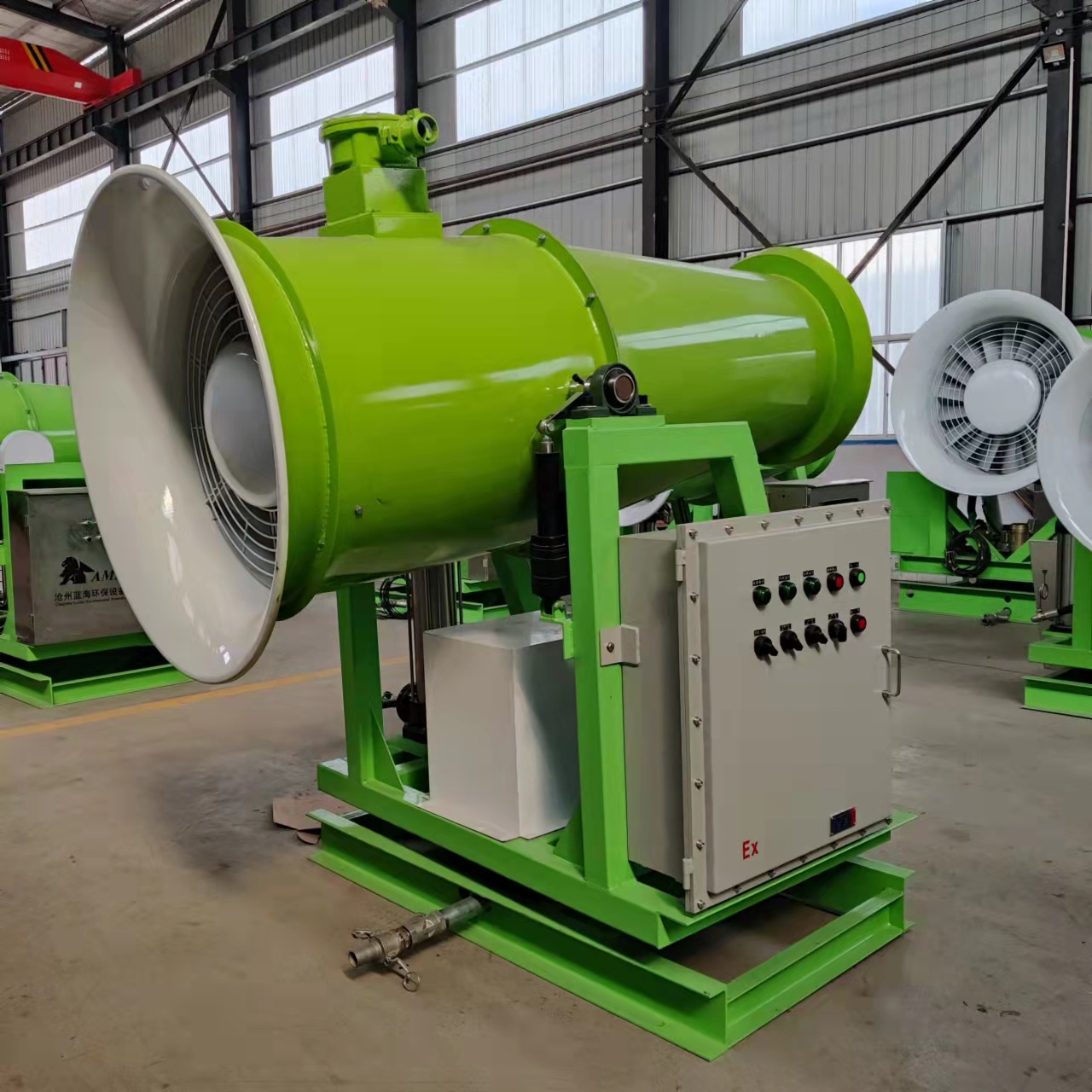 射程遠、覆蓋面積大、霧粒細小、與飄起的塵埃接觸時,形成一種潮濕霧狀體,能快速將塵埃抑制降塵;