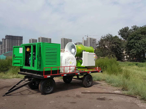 傳統的抑塵方法 是拿幾把高壓水槍做下簡單處理,不僅效率低, 浪費了大量水資源,污水遍地流也影響了環境美觀。通常一個大型貨場一天降塵用水也要幾十噸。采用新型的噴霧降塵技術,噴出的水霧可以快速和灰塵結合沉降地面,從而達到降塵的效果。由于水霧顆粒是納米級的,單位時間消耗的水遠遠小于常規的水槍噴淋,不會產生水滴,達到同樣的降塵效果只用幾噸水即可。噴霧機灰塵沉降率可達90%左右,地面無污水,可采用中水做為水源,大大節約了水資源。