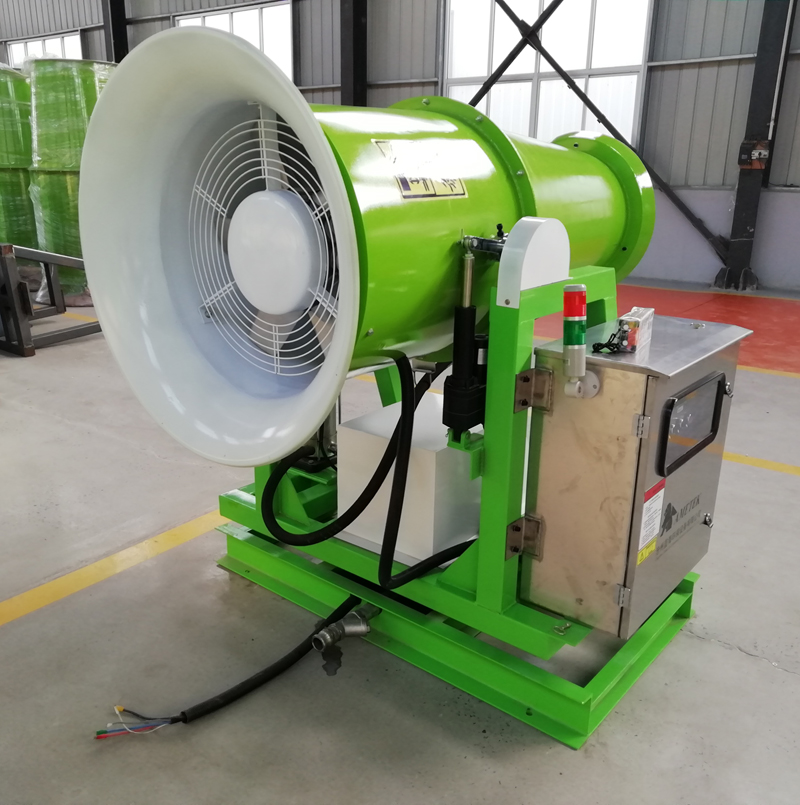 固定式除塵炮霧機可以根據用戶現場的實際污染狀況以及粉塵量的多少,量身設計遠射程噴霧方案,以達到理想的粉塵治理效果
